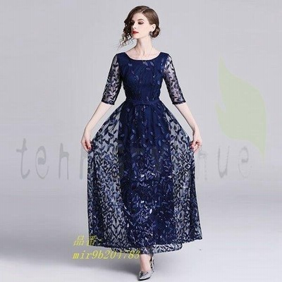 パーティードレス 結婚式 40代 代 ロング丈 五分袖 披露宴 袖あり 上品 大きいサイズ 二次会 春秋 刺繍 着痩せ 韓国風 フォーマルドレス 丸首 お呼ばれ 謝恩会 通販 Lineポイント最大get Lineショッピング